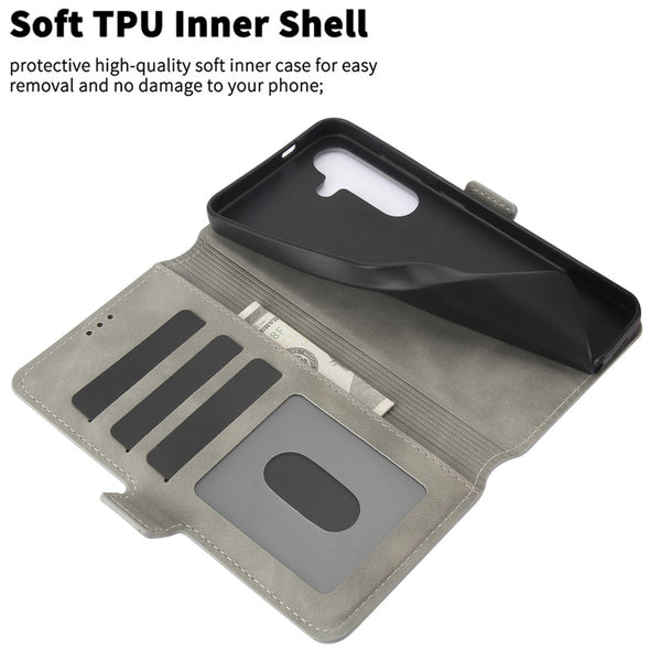 For Samsung Galaxy S23 FE 5G Dreamy Butterfly Love Flower Embossed Leather Phone Case(Grey)