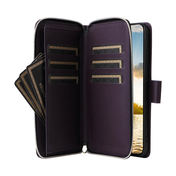 For Samsung Galaxy S23 FE 5G Nine-card Slots Zipper Wallet Bag Leather Phone Case(Dark Purple)