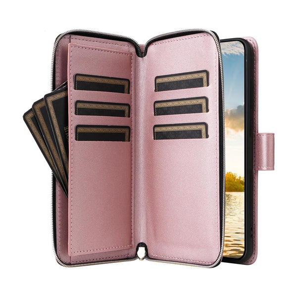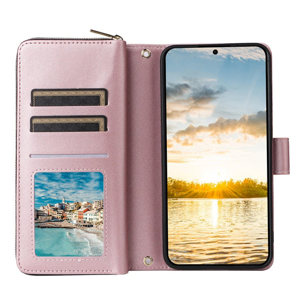 For Samsung Galaxy S23 FE 5G Nine-card Slots Zipper Wallet Bag Leather Phone Case(Rose Gold)