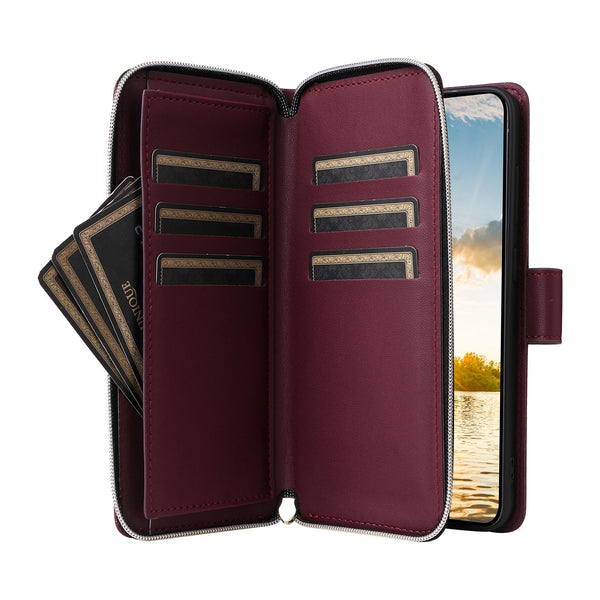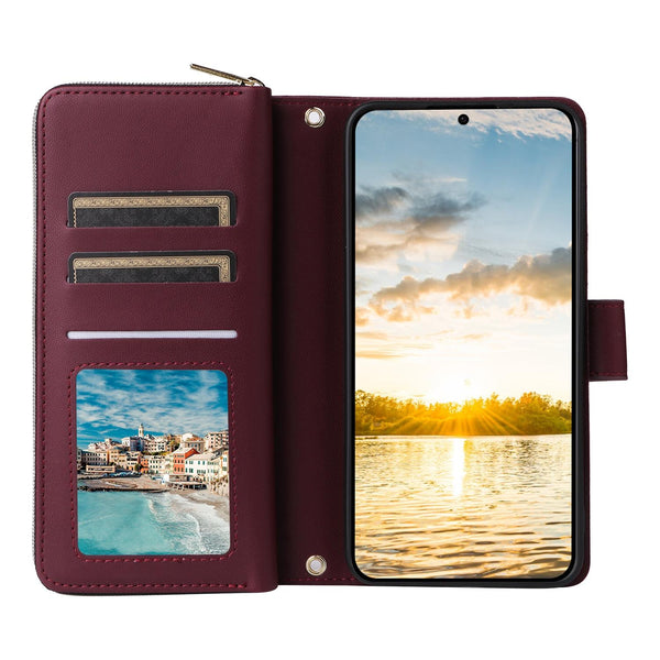 For Samsung Galaxy S23 FE 5G Nine-card Slots Zipper Wallet Bag Leather Phone Case(Wine Red)