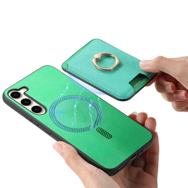For Samsung Galaxy S23 FE 5G Retro Cross Leather Ring Vertical Insert Card Bag MagSafe Phone Case(Green)
