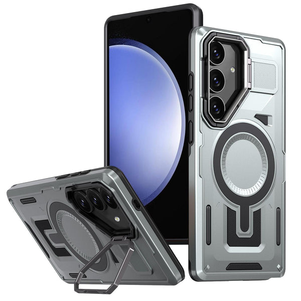 For Samsung Galaxy S23 FE 5G Shield Hollow Frame Holder MagSafe Phone Case(Grey)
