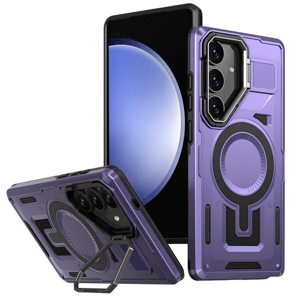 For Samsung Galaxy S23 FE 5G Shield Hollow Frame Holder MagSafe Phone Case(Purple)