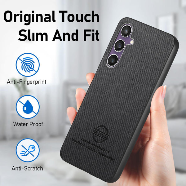 For Samsung Galaxy S23 FE 5G Twill Fabric Leather Skin Back Phone Case(Black)