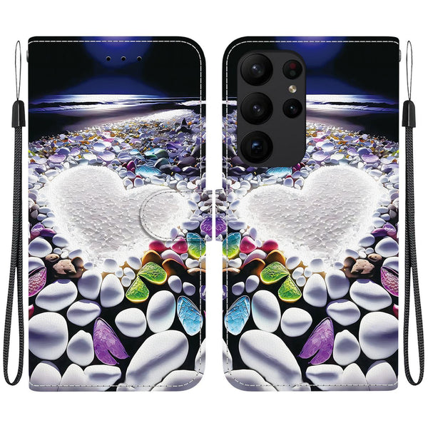 For Samsung Galaxy S23 Ultra 5G Crystal Texture Colored Drawing Leather Phone Case(Heart Shaped)