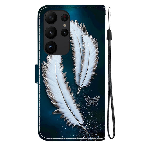 For Samsung Galaxy S23 Ultra 5G Crystal Texture Colored Drawing Leather Phone Case(White Butterfly Feathers)