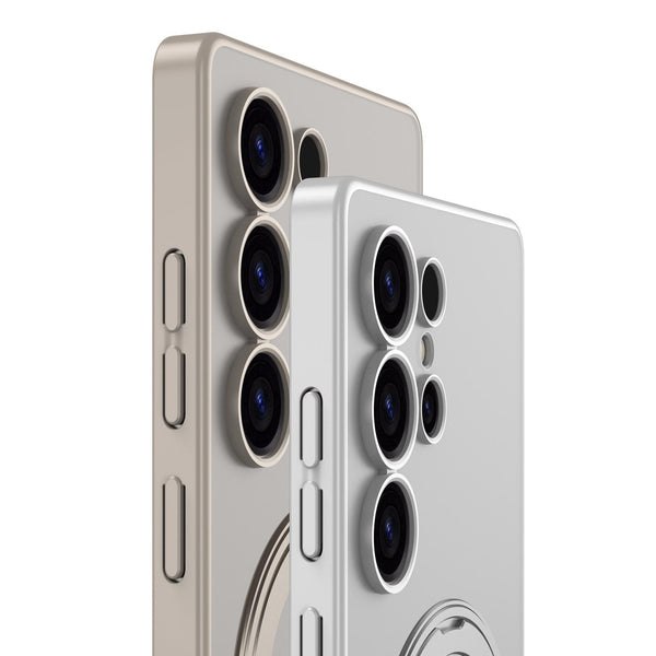 For Samsung Galaxy S23 Ultra 5G Frosted Skin-feel Magnetic Rotating Holder Phone Case, Not Included Pen(Gray)