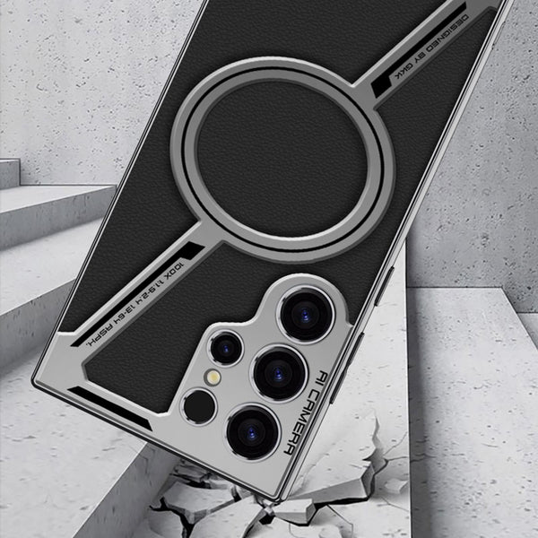 For Samsung Galaxy S23 Ultra 5G GKK Integrated Electroplating Leather Z-Shape MagSafe Phone Case(Mountain Gray)