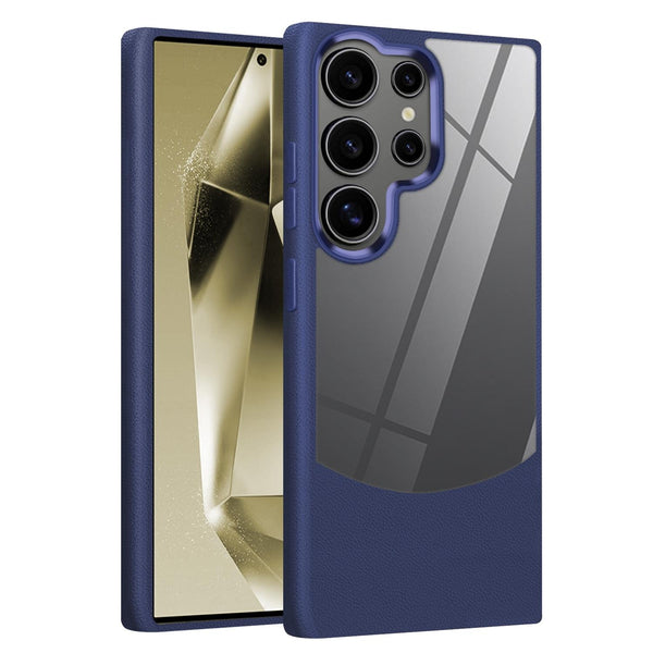 For Samsung Galaxy S23 Ultra 5G Litchi Texture TPU Hybrid Acrylic Phone Case(Blue)