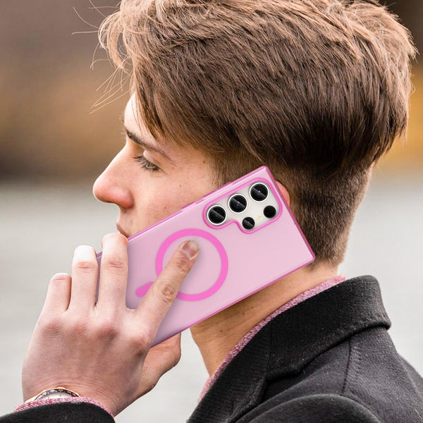 For Samsung Galaxy S23 Ultra 5G MagSafe Frosted Translucent TPU + PC Full Coverage Phone Case(Pink)