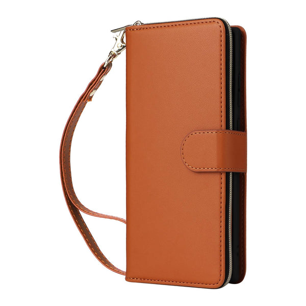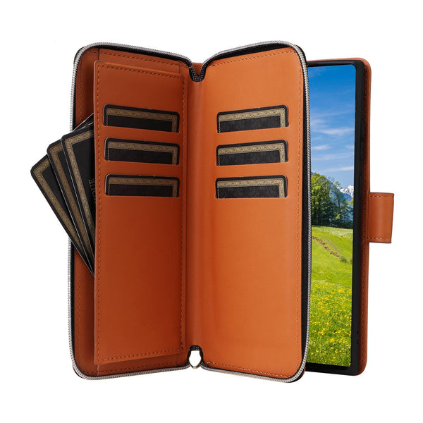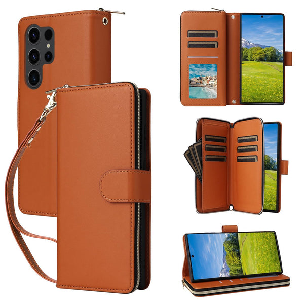 For Samsung Galaxy S23 Ultra 5G Nine-card Slots Zipper Wallet Bag Leather Phone Case(Brown)