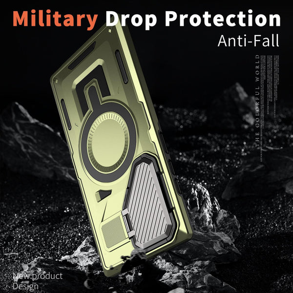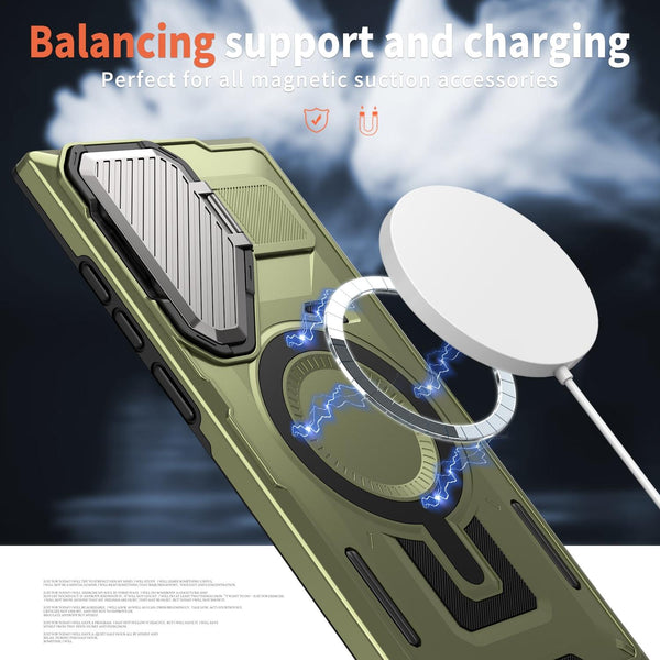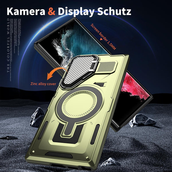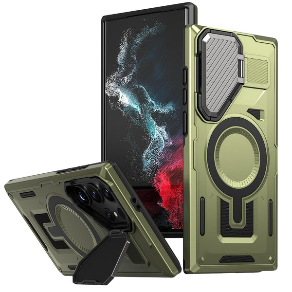 For Samsung Galaxy S23 Ultra 5G Shield Frame Holder MagSafe Phone Case(Olive Green)