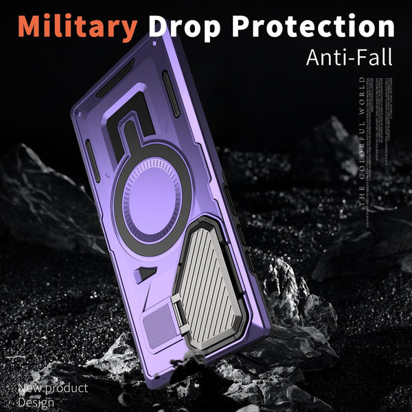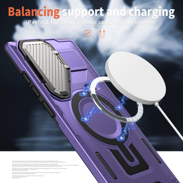 For Samsung Galaxy S23 Ultra 5G Shield Frame Holder MagSafe Phone Case(Purple)