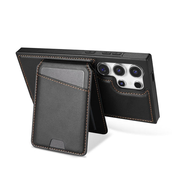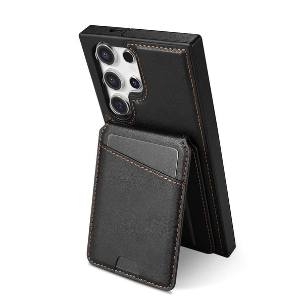 For Samsung Galaxy S23 Ultra 5G Skin Feel Detachable Card Bag Magsafe Phone Case(Black)
