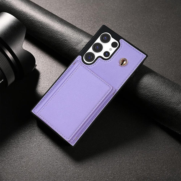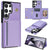 For Samsung Galaxy S23 Ultra 5G Three Fold Card Bag Phone Case with Long Lanyard(Purple)