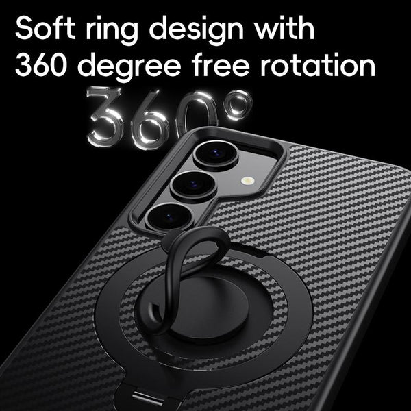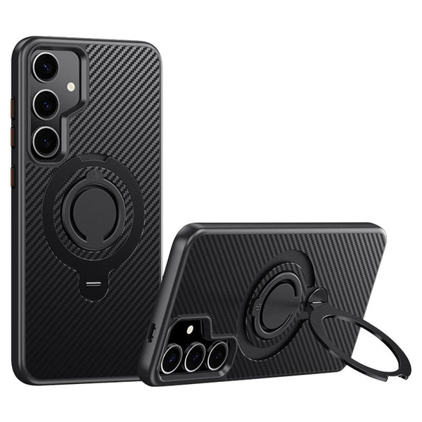 For Samsung Galaxy S24 5G Carbon Fiber MagSafe Phone Case with 360 Degree Rotating Holder(Black)