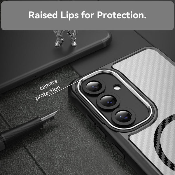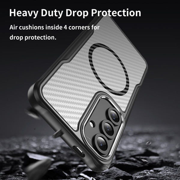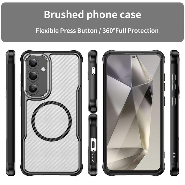 For Samsung Galaxy S24+ 5G Carbon Fiber Texture MagSafe Translucent Phone Case(Black)