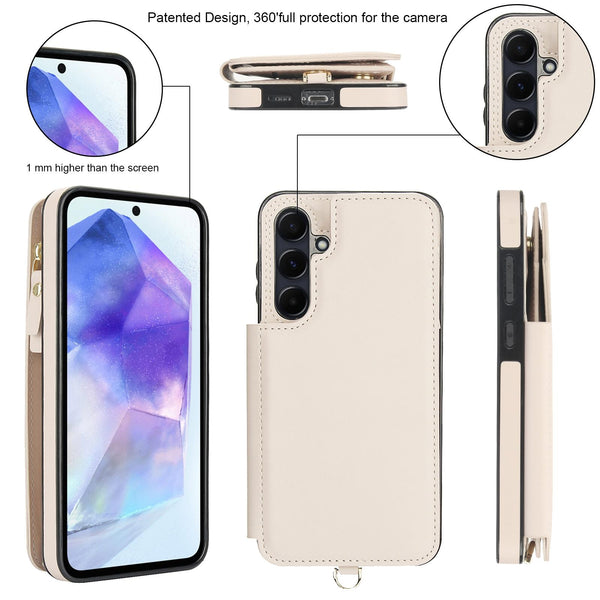 For Samsung Galaxy S24 5G Double Flap Zipper RFID Leather Phone Case with Short Lanyard(White)
