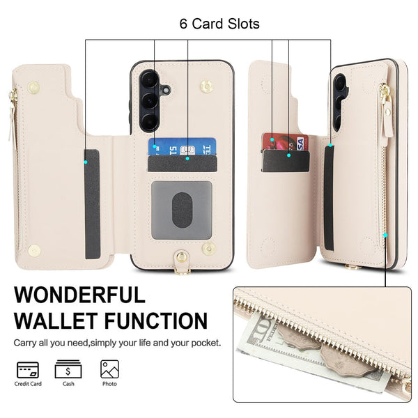 For Samsung Galaxy S24+ 5G Double Flap Zipper RFID Leather Phone Case with Short Lanyard(White)
