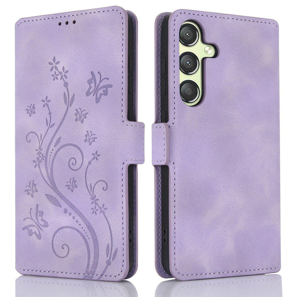 For Samsung Galaxy S24+ 5G Dreamy Butterfly Love Flower Embossed Leather Phone Case(Purple)