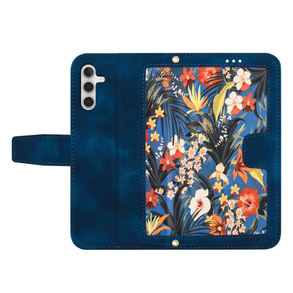 For Samsung Galaxy S24 5G Floral Pattern Leather Phone Case with Lanyard(Dark Blue)