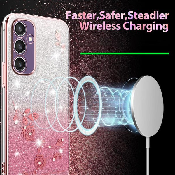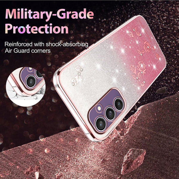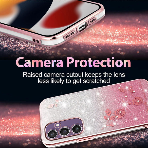 For Samsung Galaxy S24+ 5G Gradient Glitter Flower All-inclusive Phone Case(Pink)