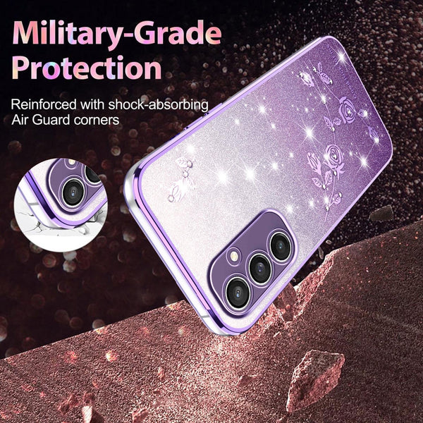 For Samsung Galaxy S24 5G Gradient Glitter Flower All-inclusive Phone Case(Purple)