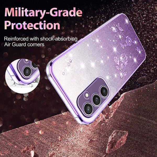 For Samsung Galaxy S24+ 5G Gradient Glitter Flower All-inclusive Phone Case(Purple)