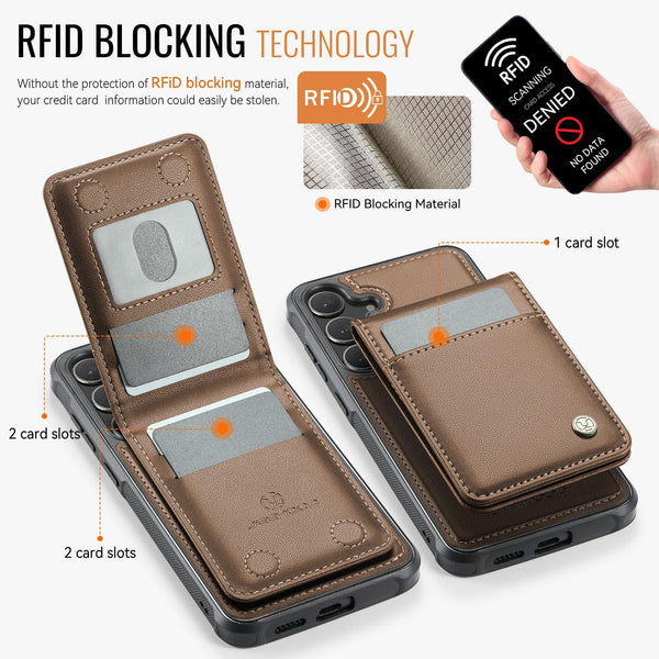 For Samsung Galaxy S24+ 5G JEEHOOD J06 British Style RFID MagSafe Card Bag PU Phone Case(Brown)