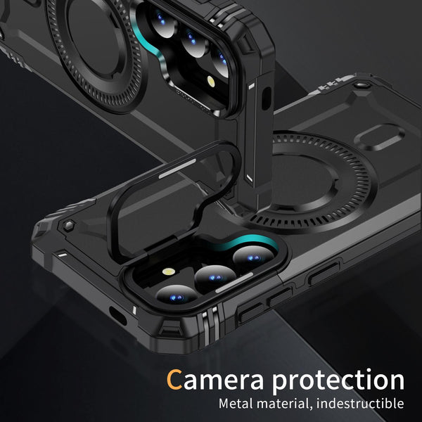 For Samsung Galaxy S24+ 5G Lens Holder MagSafe Phone Case(Black)