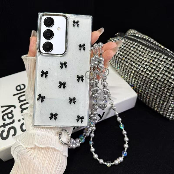 For Samsung Galaxy S24 5G Little Fresh Bow Neck Chain TPU Phone Case(Black)