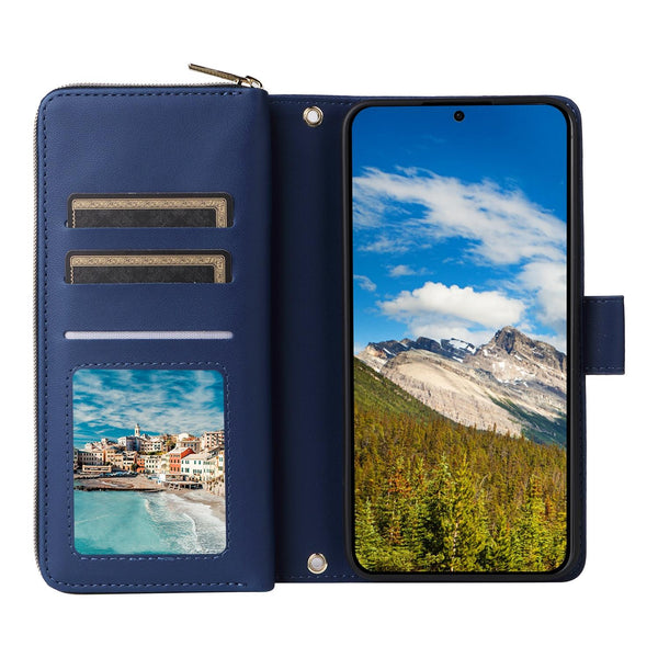 For Samsung Galaxy S24+ 5G Nine-card Slots Zipper Wallet Bag Leather Phone Case(Blue)