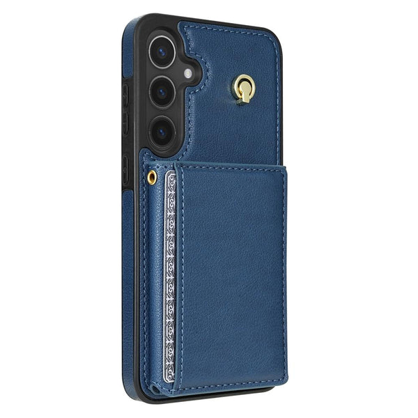 For Samsung Galaxy S24 5G Three Fold Card Bag Phone Case with Long Lanyard(Blue)