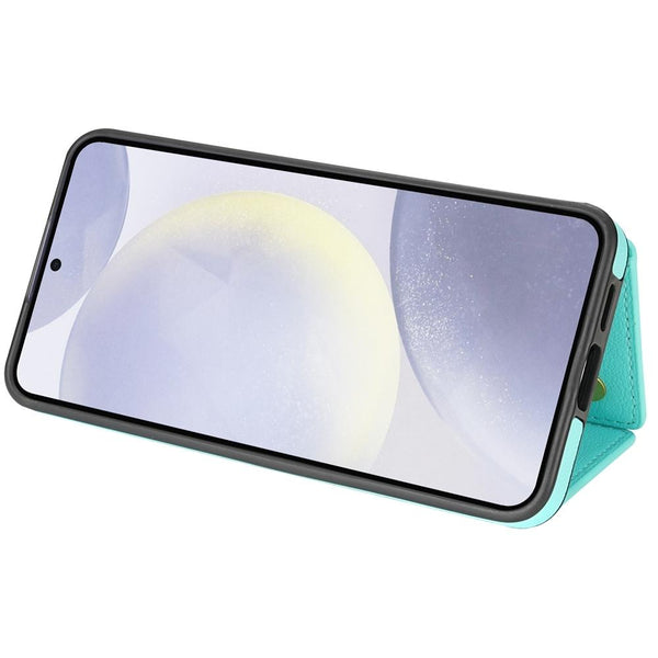 For Samsung Galaxy S24 5G Three Fold Card Bag Phone Case with Long Lanyard(Mint)