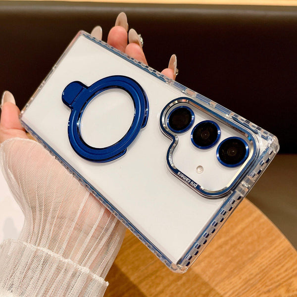 For Samsung Galaxy S24 5G Transparent MagSafe Holder Phone Case with Lens Film(Blue)