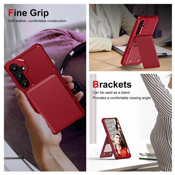 For Samsung Galaxy S24+ 5G Vertical Flip Card Bag Holder Leather Phone Case(Red)