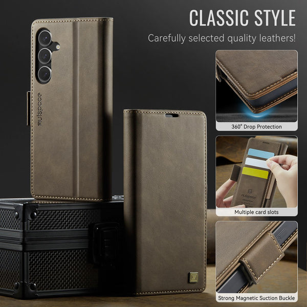For Samsung Galaxy S24 FE 5G AutSpace A11 Side Buckle MagSafe Magnetic RFID Phone Leather Case(Coffee)