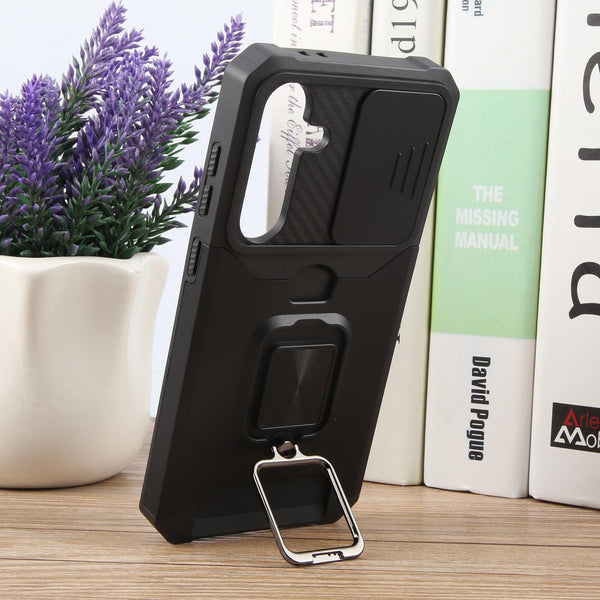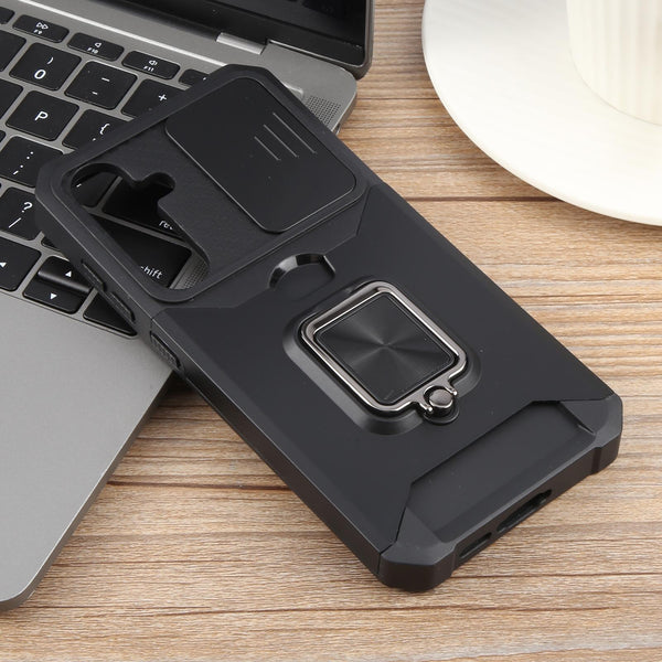 For Samsung Galaxy S24 FE 5G Camera Shield Card Slot PC Hybrid TPU Phone Case(Black)