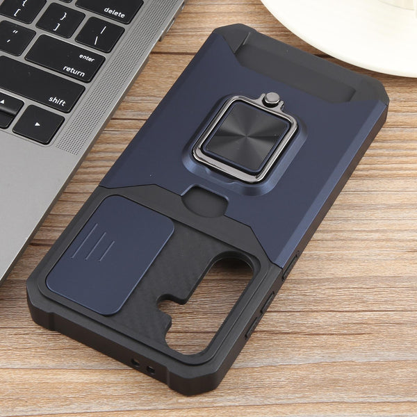For Samsung Galaxy S24 FE 5G Camera Shield Card Slot PC Hybrid TPU Phone Case(Blue)