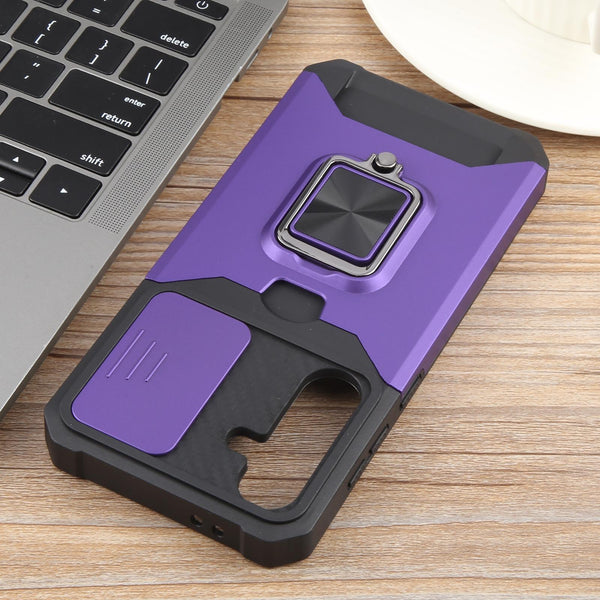 For Samsung Galaxy S24 FE 5G Camera Shield Card Slot PC Hybrid TPU Phone Case(Purple)