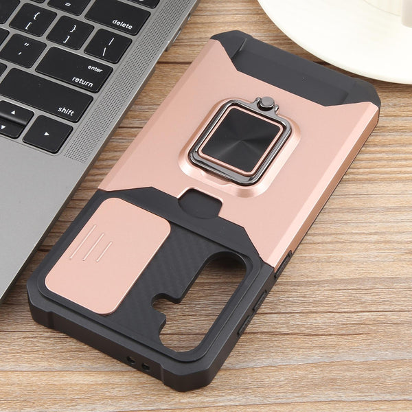 For Samsung Galaxy S24 FE 5G Camera Shield Card Slot PC Hybrid TPU Phone Case(Rose Gold)