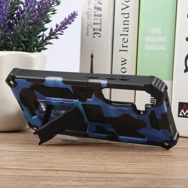 For Samsung Galaxy S24 FE 5G Camouflage Armor Kickstand TPU Hybrid PC Magnetic Phone Case(Dark Blue)
