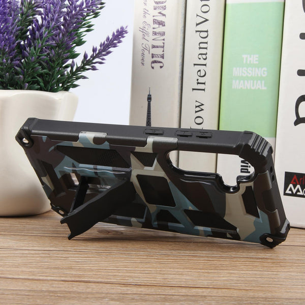 For Samsung Galaxy S24 FE 5G Camouflage Armor Kickstand TPU Hybrid PC Magnetic Phone Case(Light Blue)