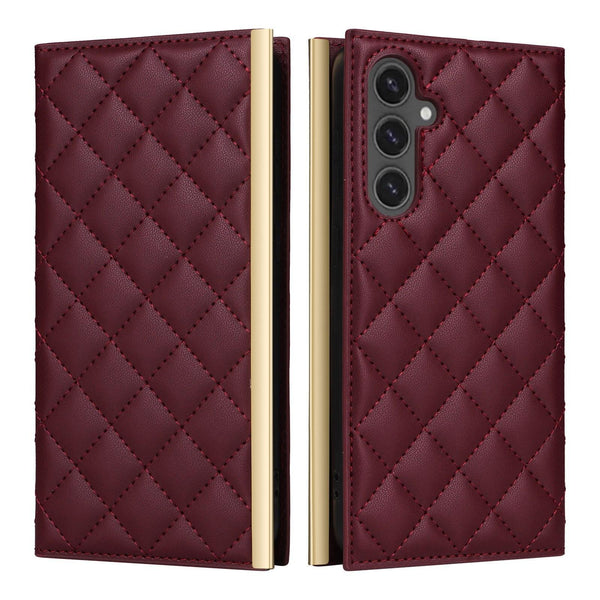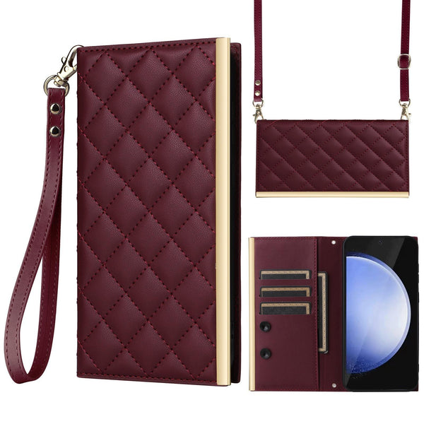 For Samsung Galaxy S24 FE 5G Crossbody Rhombic Sucker Leather Phone Case(Claret)