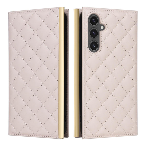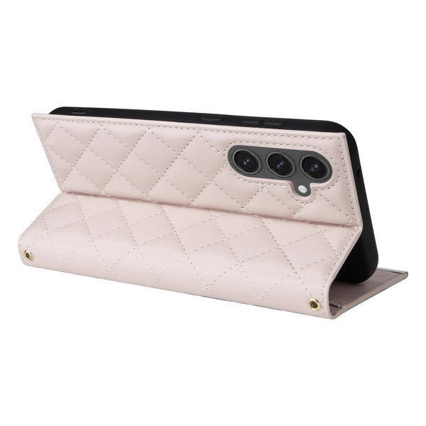 For Samsung Galaxy S24 FE 5G Crossbody Rhombic Sucker Leather Phone Case(White)