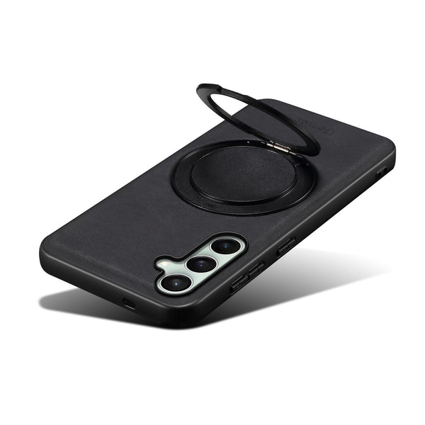 For Samsung Galaxy S24 FE 5G Denior A14 Skin Feel Rotating Holder MagSafe Phone Case(Black)