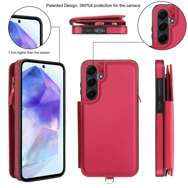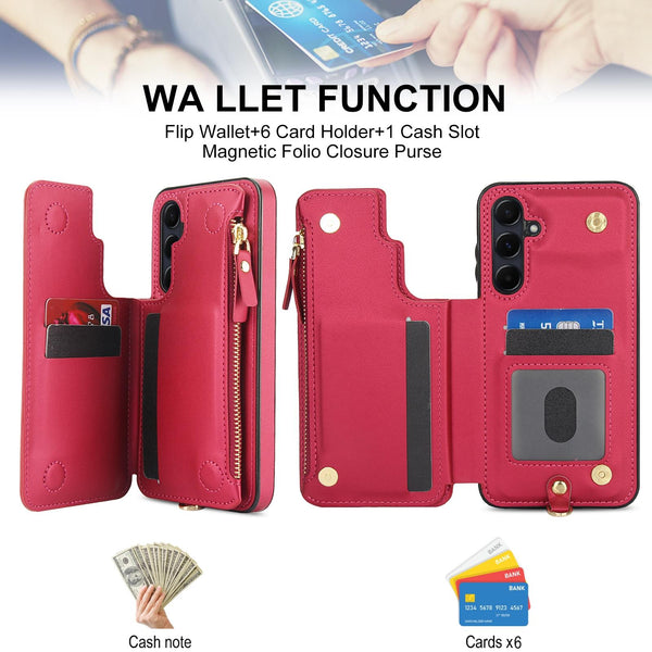 For Samsung Galaxy S24 FE 5G Double Flap Zipper RFID Leather Phone Case with Short Lanyard(Red)