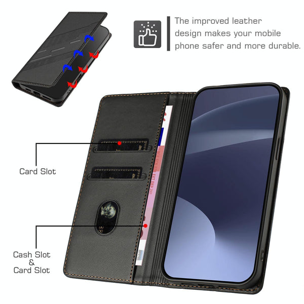 4. Wallet Function: The leather case is equipped with card slots for placing cards and a small amount of cash.