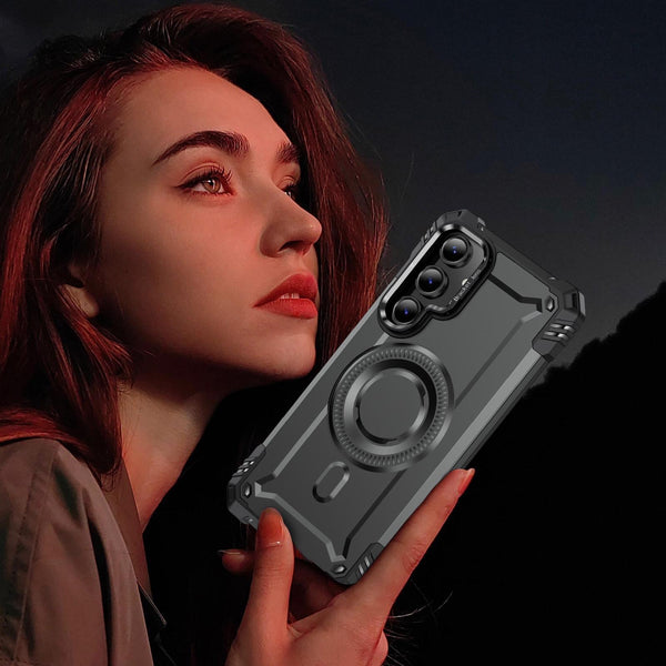 For Samsung Galaxy S24 FE 5G Lens Holder MagSafe Phone Case(Grey)