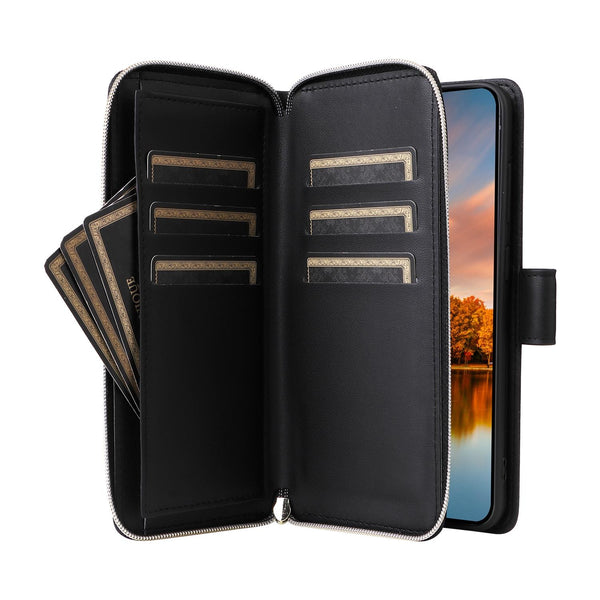 For Samsung Galaxy S24 FE 5G Nine-card Slots Zipper Wallet Bag Leather Phone Case(Black)